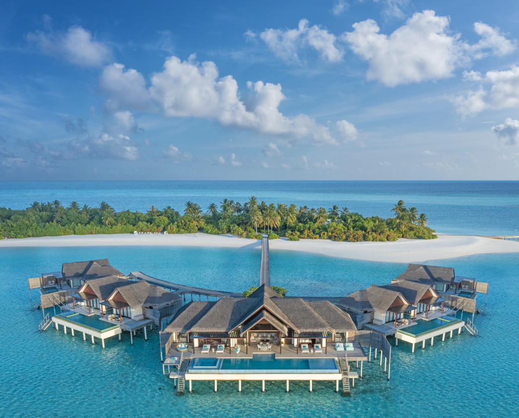 Die Inseln sind von üppiger tropischer Vegetation umgeben und bieten atemberaubende Ausblicke auf den Indischen Ozean. Die Villen und Suiten sind stilvoll eingerichtet und verfügen über private Pools, Terrassen und direkten Zugang zum Strand oder Wasser.